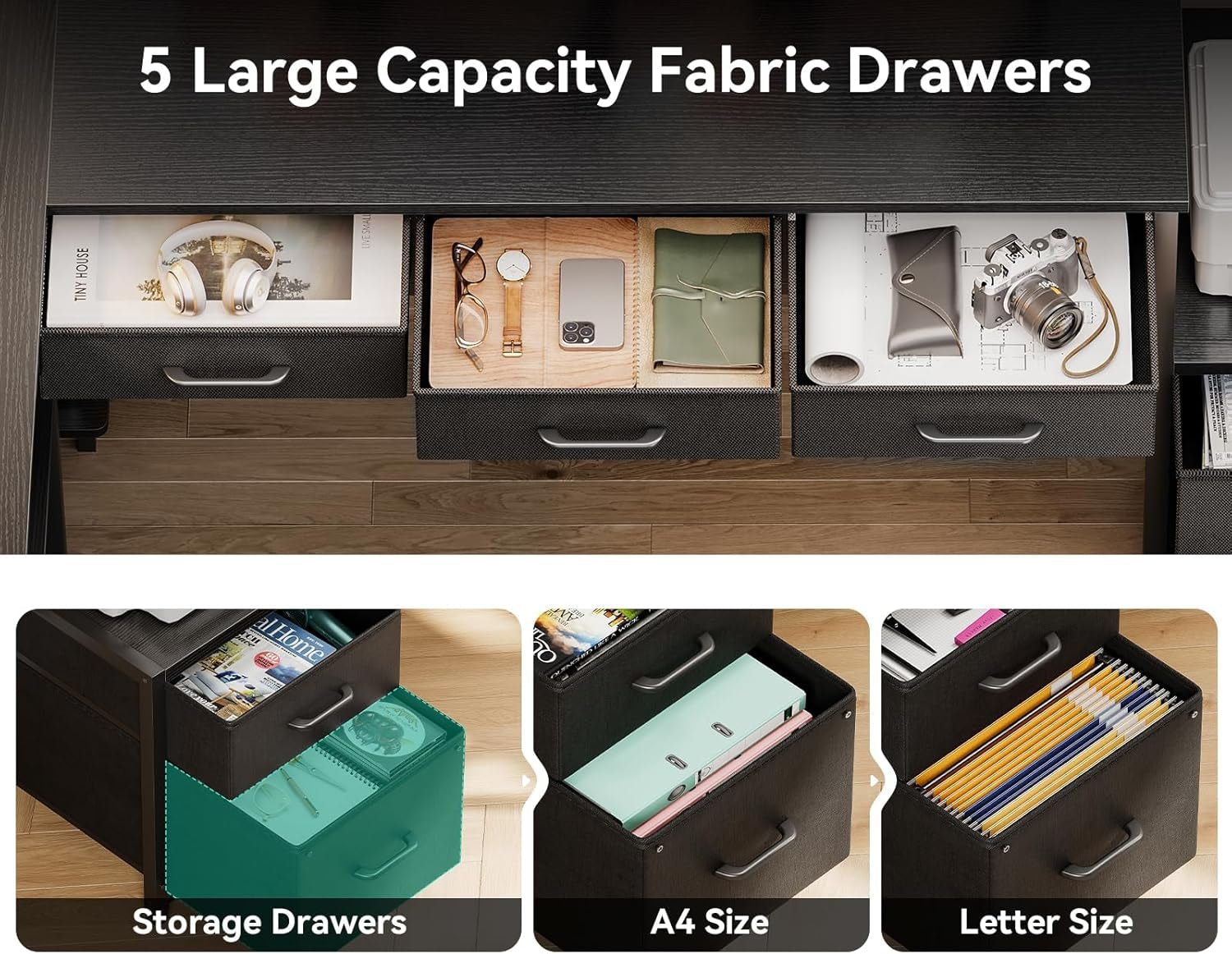 79 Inch L Shaped Desk with File Drawers, Reversible L Shaped Gaming Desk with Power Outlets & LED Lights, Computer Desk with Storage Shelves for Home Office, Black